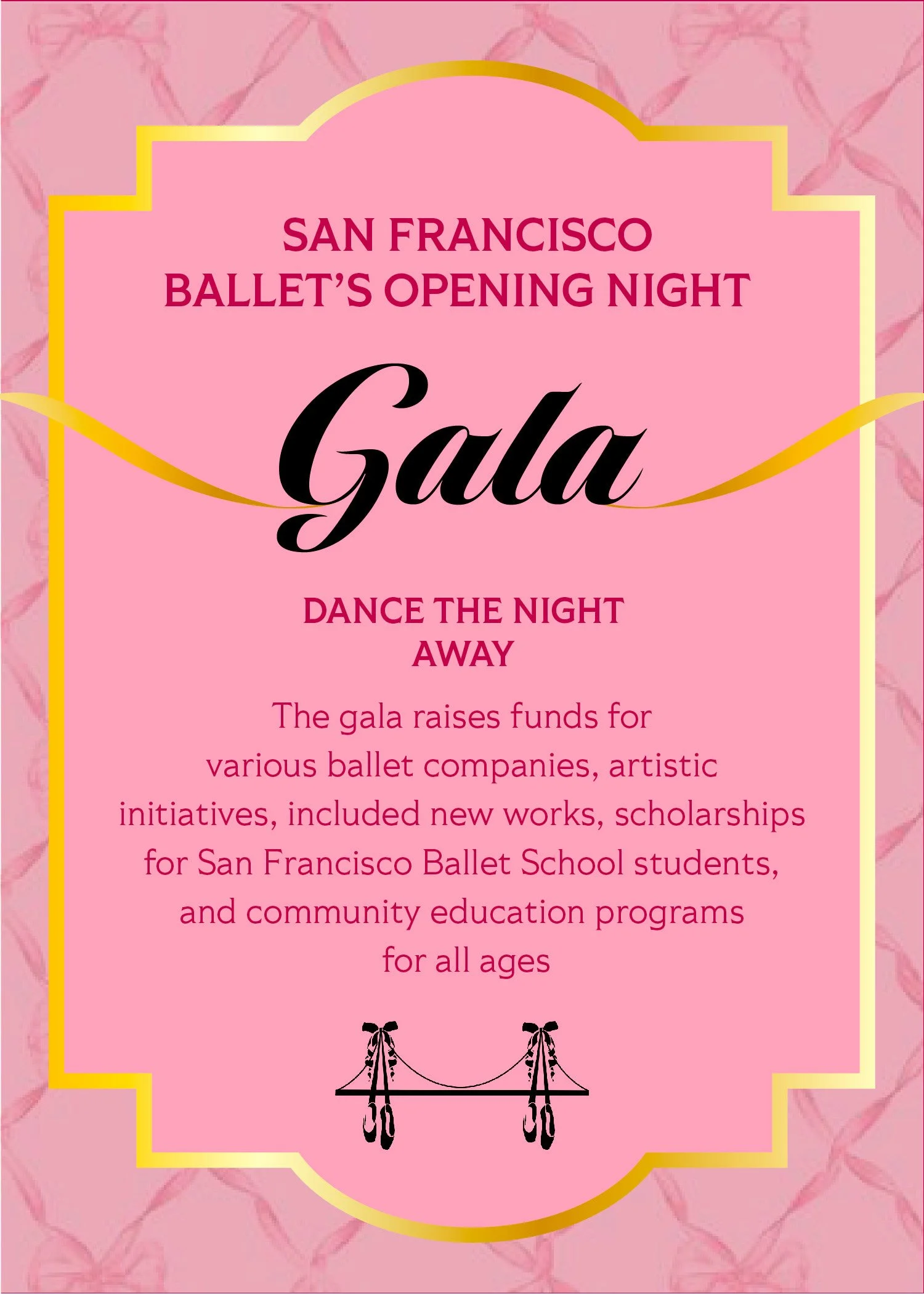 At the base of the invitation, a subtle illustrative detail references the San Francisco skyline through a bridge form, reinterpreted using ballet slippers. This blends the identity of the city with the language of ballet, grounding the design in place while maintaining the elegance and fluidity of the overall concept.
